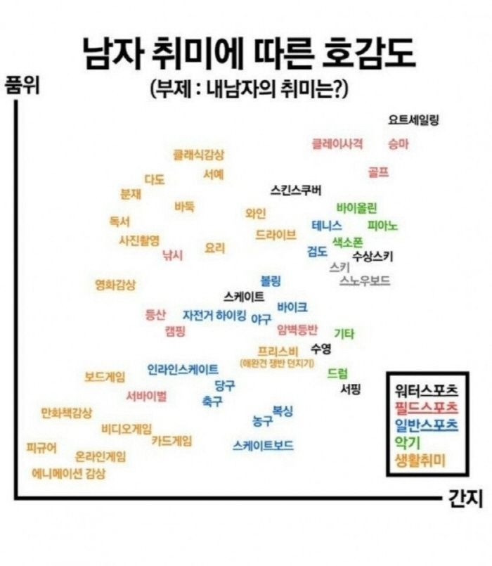 여성 취미 순위에는 아예 등장하지 않을 정도로 성별 차이가 큽니다.