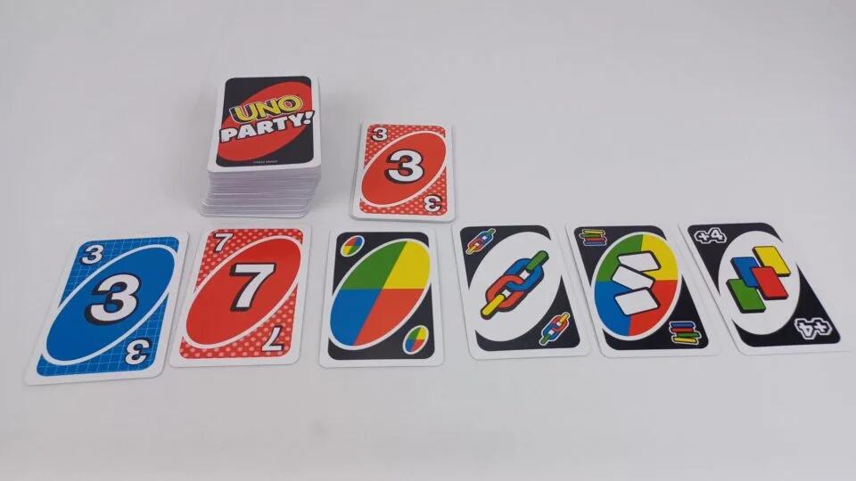 UNO Party มีพื้นฐานเดียวกันกับ UNO แบบคลาสสิก โดยใช้ไพ่ 108 ใบแบ่งเป็น 4 สี ได้แก่ แดง เขียว เหลือง น้ำเงิน พร้อมไพ่พิเศษ เช่น Skip (ไพ่ข้ามไปผู้เล่นถัดไป) Reverse (ไพ่ย้อนกลับ) หรือ Draw 2 (ไพ่จั่ว 2 ใบ) และยังมีไพ่ Wild และ Wild Draw 4 ที่พลิกเกมได้ภายในวินาทีเดียว ให้ความตื่นเต้นในทุกรอบ